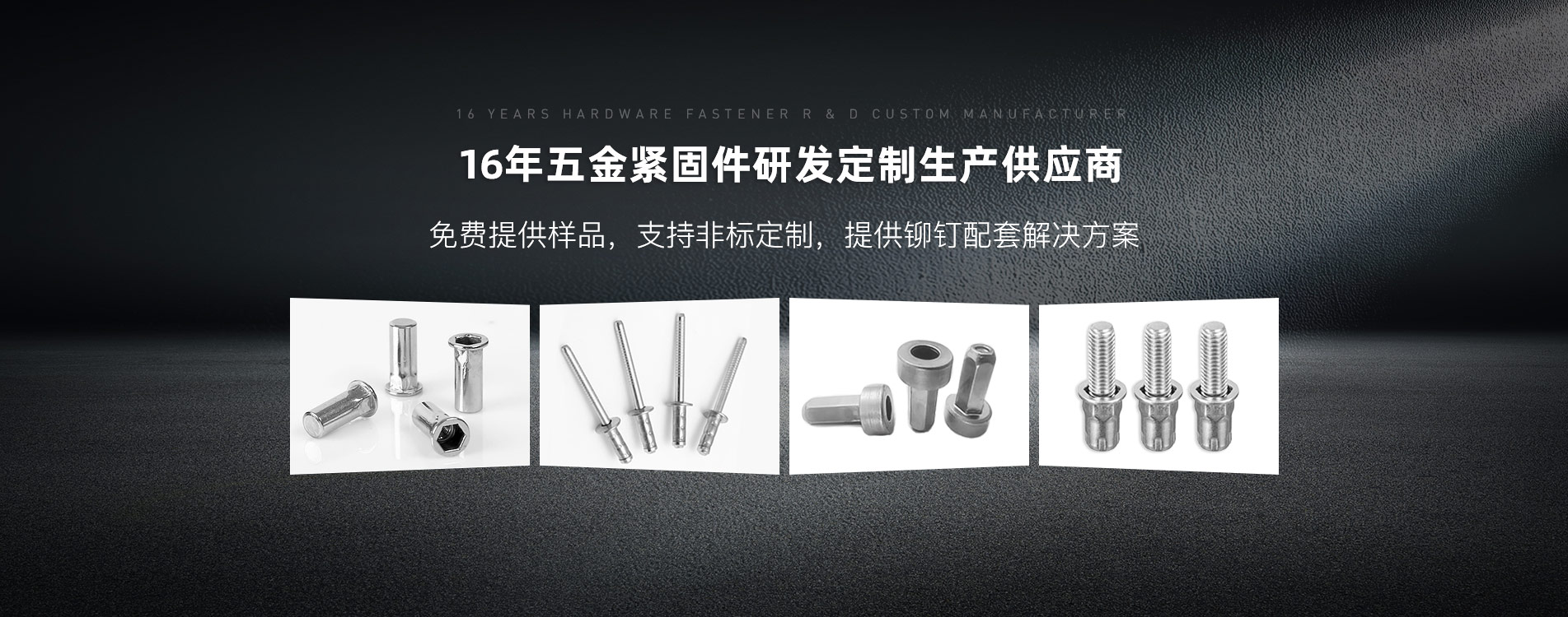 專(zhuan)業針對市場進行開(kai)發生(sheng)產和銷售各(ge)種(zhong)碳鋼、鋁、銅、不銹鋼等(deng)材質的(de)鉚接件、標(biao)準件以及各(ge)種(zhong)非標(biao)異型緊固件