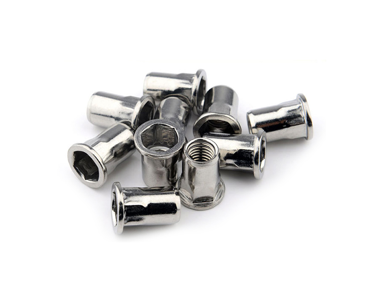 產品(pin)名(ming)稱:平頭(tou)半六角通孔拉(la)鉚螺母 不(bu)銹(xiu)鋼