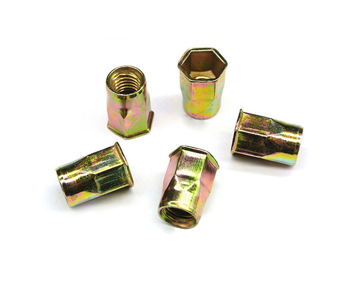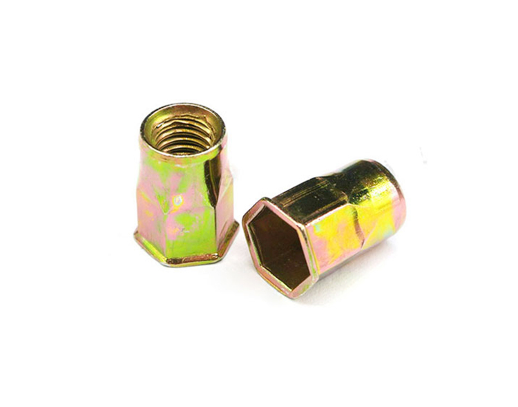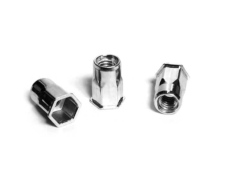 產品特點:小沉頭鉚螺母是沉頭鉚螺母改進型并且不需要沉孔配套可以使兩個工件之間的間隙降至最小或至零,工件六角形開孔配合六角形鉚螺母,可使其達到最大防轉效果。