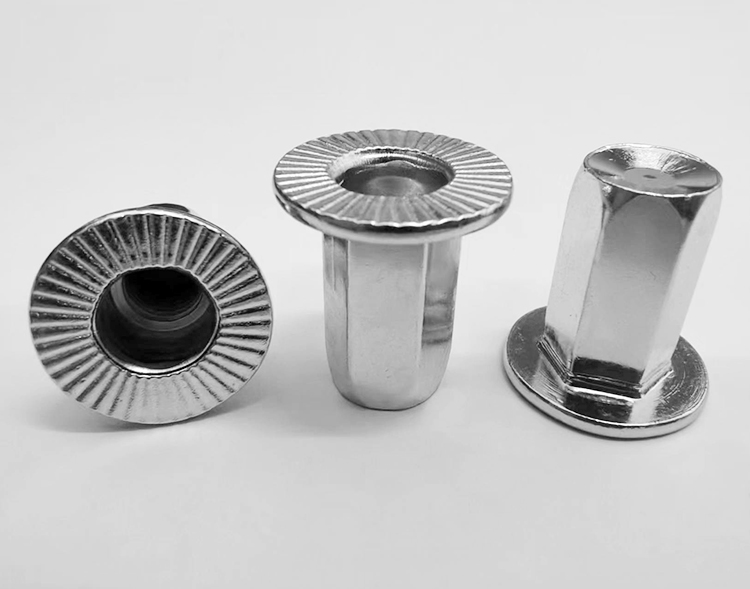 產品特點:工件六角形開孔配合六角形鉚螺母,可使其達到最大防轉效果。