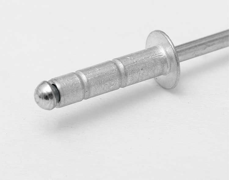 產品特點:多鼓的膨脹方式,提供更大的鉚接范圍,適用不同厚度的工件,鉚(liu)接后釘芯(xin)將鉚(liu)釘釘體末端拉成雙鼓形鉚(liu)釘頭,從而把兩個(ge)被(bei)鉚(liu)接結構件夾緊,優異的釘芯保持力在強烈的震動環境下釘頭不會脫落,避免因劇烈震動導致釘芯脫落所造成的損害。