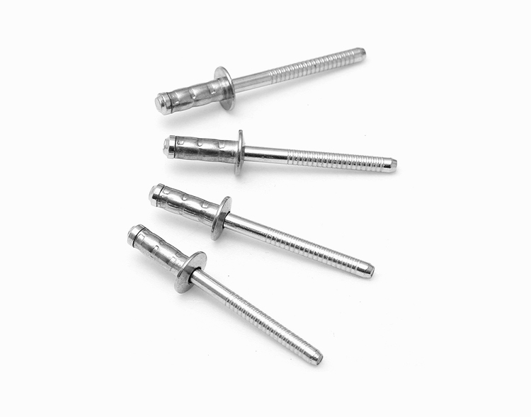 產品特點:多鼓的膨脹方式,提供更大的鉚接范圍,適用不同厚度的工件,鉚接(jie)后(hou)釘(ding)芯(xin)將鉚釘(ding)釘(ding)體末端拉成(cheng)雙鼓形鉚釘(ding)頭,從而把兩(liang)個(ge)被(bei)鉚接(jie)結構件夾緊,優異的釘芯保持力在強烈的震動環境下釘頭不會脫落,避免因劇烈震動導致釘芯脫落所造成的損害。
